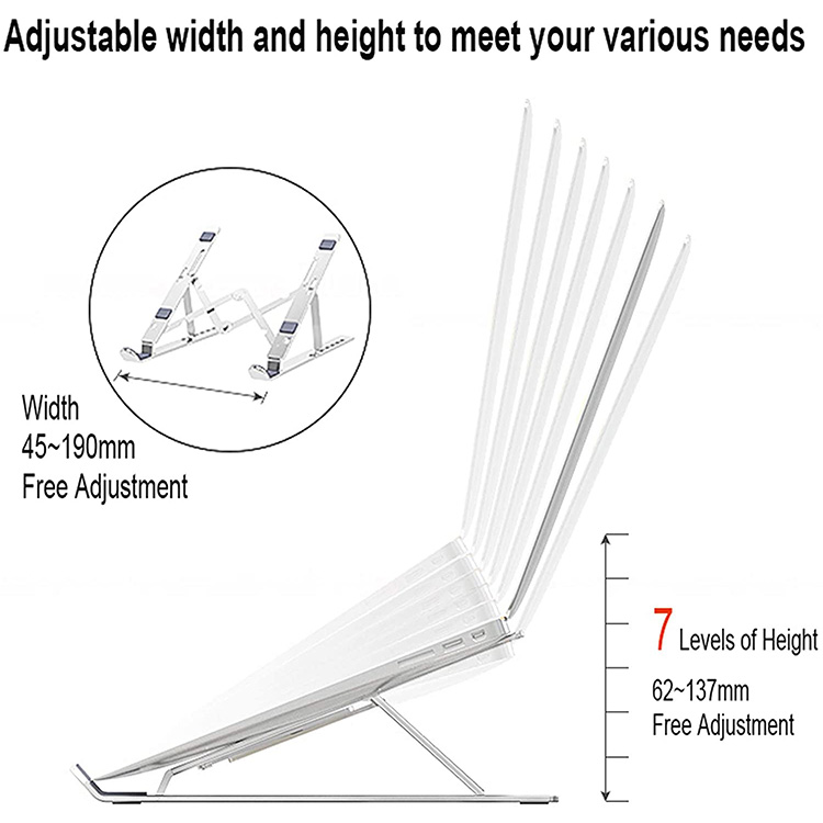 একটি স্বনামধন্য প্রস্তুতকারক হিসাবে, আমরা গর্বের সাথে বোহং মাল্টি-পজিশন অ্যাডজাস্টেবল ল্যাপটপ স্ট্যান্ড ফোল্ডেবল অ্যালুমিনিয়াম কম্পিউটার হোল্ডার উপস্থাপন করি, একটি উচ্চ-মানের এবং বহুমুখী সমাধান যা আপনার চাহিদা মেটাতে তৈরি করা হয়েছে। এই স্ট্যান্ডটি সাতটি সামঞ্জস্যযোগ্য উচ্চতা সেটিংস অফার করে, যা আপনাকে এটিকে আপনার পছন্দের অপারেটিং কোণ এবং উচ্চতার সাথে মানানসই করার অনুমতি দেয়, আরামের প্রচার করে এবং এর অর্গোনমিক ডিজাইনের সাথে ঘাড়, কাঁধ এবং মেরুদণ্ডের অস্বস্তি হ্রাস করে।